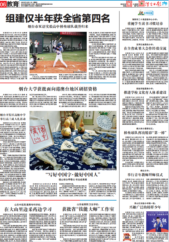 《煙臺日報》10月11日06版刊登《煙臺大學獲批面向港澳臺地區研招資格》