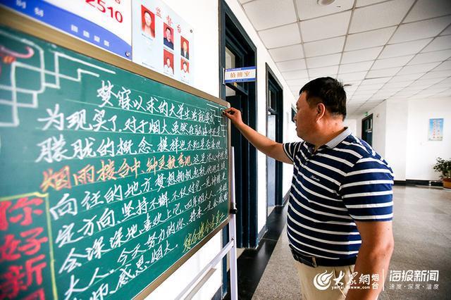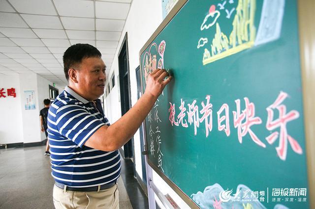 煙臺大學綜合樓里,李明正給小黑板繪上花邊