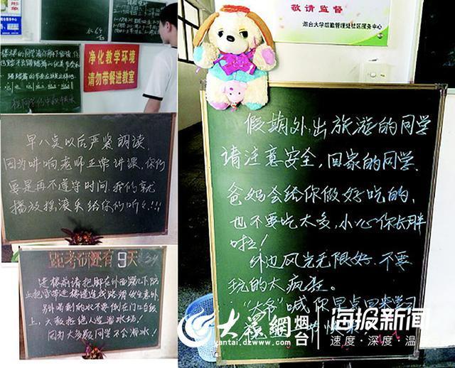 在綜合樓工作,李明也沒閑著。用煙臺大學后勤管理處社區服務中心主任葛振亮的話說,李明不僅將“小黑板文化”從六教帶到了綜合樓,更是將它做成了一種校園文化。時代在進步,煙臺大學的后勤服務工作也“一直在路上”,現在,學生能通過微信“報修”,能通過手機查詢失物招領信息,可手寫的“小黑板”,從未在煙臺大學的校園里消失過。