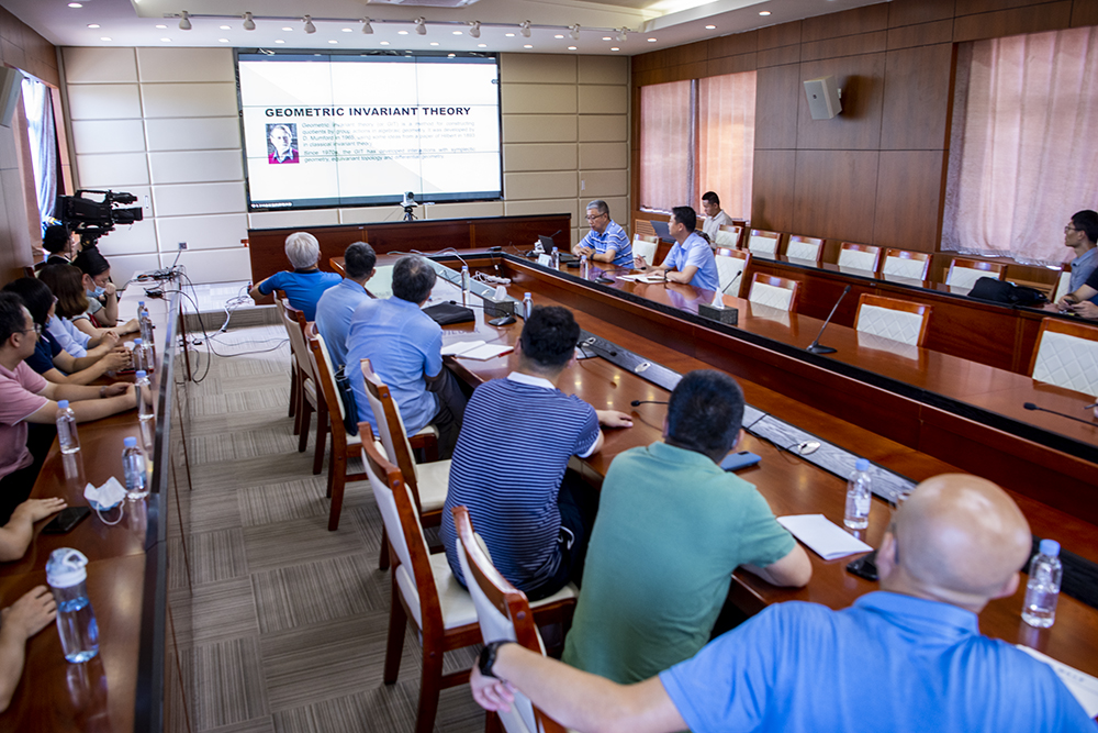 來(lái)訪期間,田剛院士通過(guò)線上線下相結(jié)合的方式為全校師生作題為《K-穩(wěn)定性》的學(xué)術(shù)報(bào)告。報(bào)告中,田剛院士首先通過(guò)代數(shù)群是否有限生成問(wèn)題(Hilbert第14問(wèn)題)引入了經(jīng)典的幾何不變理論。接著,田剛院士詳細(xì)闡述了K?hler-Einstein度量的存在性問(wèn)題,通過(guò)引入“K-穩(wěn)定性”的概念提出了一個(gè)Fano曲面存在K?hler-Einstein度量存在的充要條件。最后,田剛院士介紹了“K-穩(wěn)定性”和“幾何不變理論”的關(guān)系以及近年來(lái)國(guó)內(nèi)外學(xué)者在“K-穩(wěn)定性”研究領(lǐng)域所取得的重要研究成果。與會(huì)師生紛紛表示田院士的報(bào)告緊扣國(guó)際數(shù)學(xué)研究前沿,理論深刻,思想深邃,使大家不僅了解了國(guó)際學(xué)術(shù)前沿,也領(lǐng)略到田剛院士的大家風(fēng)范和學(xué)者之風(fēng),感受到了學(xué)術(shù)的無(wú)窮魅力。