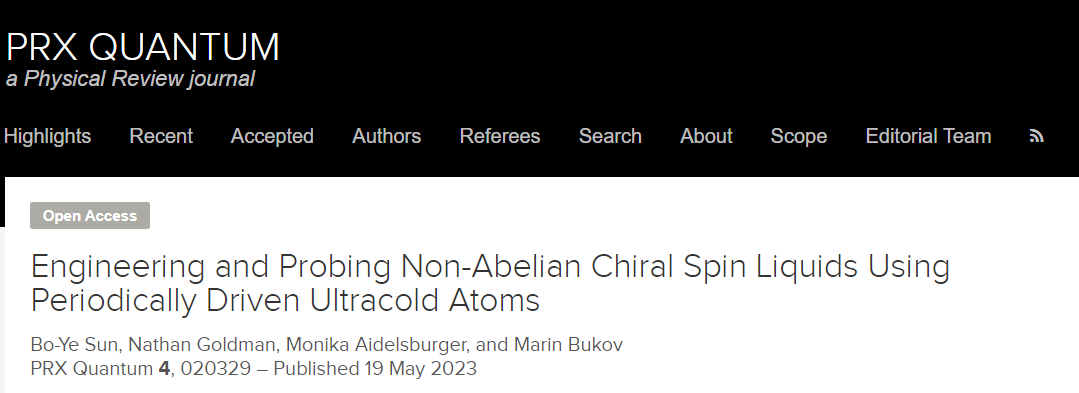 近日,煙臺大學物理與電子信息學院教師孫伯業博士與比利時布魯塞爾自由大學Goldman教授,德國普朗克研究所Bukov教授在量子計算領域頂級期刊,由美國物理學會主辦的《PRX Quantum》(影響因子:7.514)上發表了高水平研究論文。論文題目為"Engineering and Probing Non-Abelian Chiral Spin Liquids Using Periodically Driven Ultracold Atoms",孫伯業博士為第一作者及共同通訊作者。