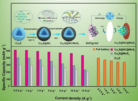 圖1Cu2S@NC@MoS3異質結構的合成示意圖以及電化學性能