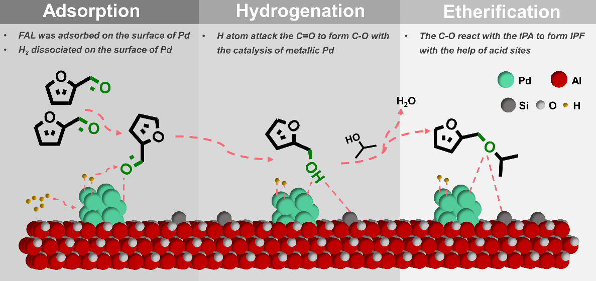 近日,我校呂宏纓教授課題組通過化學氣相沉積法,使用SiO2修飾的Al2O3負載Pd,實現了糠醛的高效選擇性醚化。該催化劑上目標產物的最高收率可達86%,且該催化劑表現出良好的穩定性,具有潛在的應用價值。