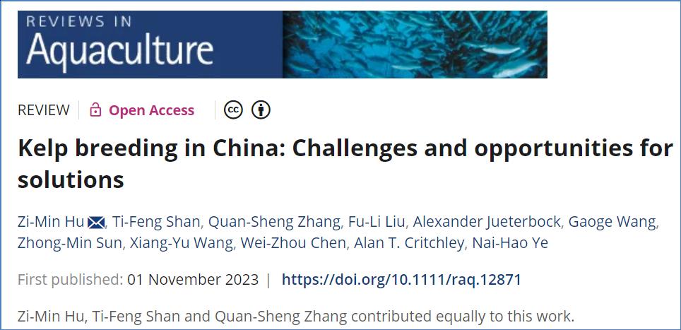 煙臺大學海洋學院胡自民教授最近在水產科學領域頂級期刊《Reviews in Aquaculture》(2022年Fisheries 領域排名第二),發表了題為Kelp breeding in China: Challenges and opportunities for solutions的研究成果。煙臺大學為論文第一(獨立)署名單位,胡自民教授為第一兼通訊作者,其他合作者包括煙臺大學海洋學院的張全勝教授,以及來自中國科學院海洋研究所、中國海洋大學、中國水產科學院黃海水產研究所、挪威Lund University和加拿大Cape Breton大學等國內外同行。