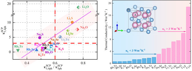 材料的熱導(dǎo)率是衡量材料傳熱能力的參數(shù),也是決定材料功能的關(guān)鍵點之一。在現(xiàn)代技術(shù)應(yīng)用中,晶格熱導(dǎo)率在晶體管、光伏器件和熱電器件等領(lǐng)域中起著關(guān)鍵作用。比如,設(shè)計高效散熱裝置時需要高熱導(dǎo)率材料,而為了最大化熱電轉(zhuǎn)化效率則需要較低的晶格熱導(dǎo)率的材料。因此,發(fā)現(xiàn)和應(yīng)用具有極低和極高熱導(dǎo)率的材料至關(guān)重要。