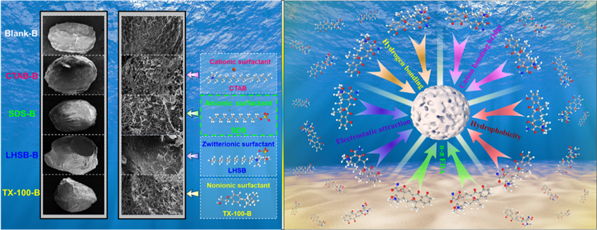 圖1水凝膠珠吸附劑形貌調(diào)控與四環(huán)素吸附機理圖