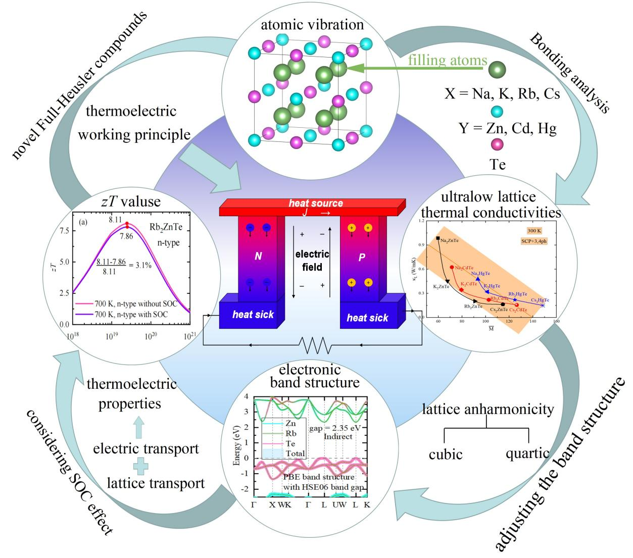 文章題目:First-Principles Study of the Effects of High-Order Anharmonicity on the Thermal Transport Properties and Thermoelectric Effects in the Lattice Dynamics of 12 New Full–Heusler Compounds X2YTe (X = Na, K, Rb, Cs; Y = Zn, Cd, Hg)