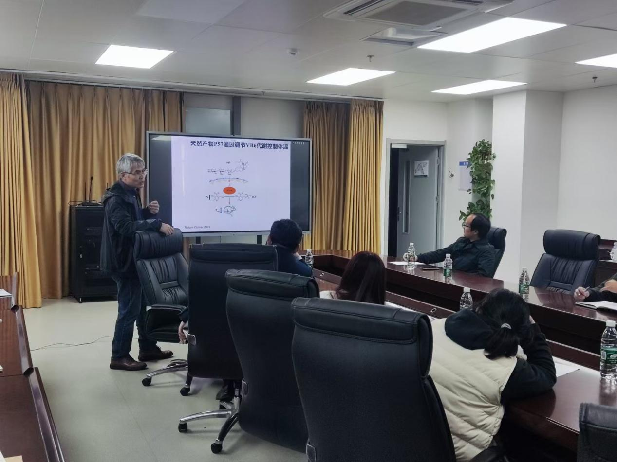 會(huì)上,黨永軍教授作了題為“腫瘤免疫調(diào)節(jié)分子的發(fā)現(xiàn)和機(jī)制研究”的學(xué)術(shù)報(bào)告。他介紹了該課題組通過利用多種化學(xué)生物學(xué)技術(shù)手段,以及發(fā)現(xiàn)多個(gè)候選化合物靶標(biāo)的研究情況。他重點(diǎn)講解了腫瘤免疫調(diào)節(jié)分子的發(fā)現(xiàn)和相關(guān)機(jī)制的研究。此外,黨永軍教授還對(duì)其課題組在天然產(chǎn)物皂苷類化合物p57的靶標(biāo)發(fā)現(xiàn)及其體溫調(diào)節(jié)機(jī)制研究方面的工作做了詳細(xì)解說。