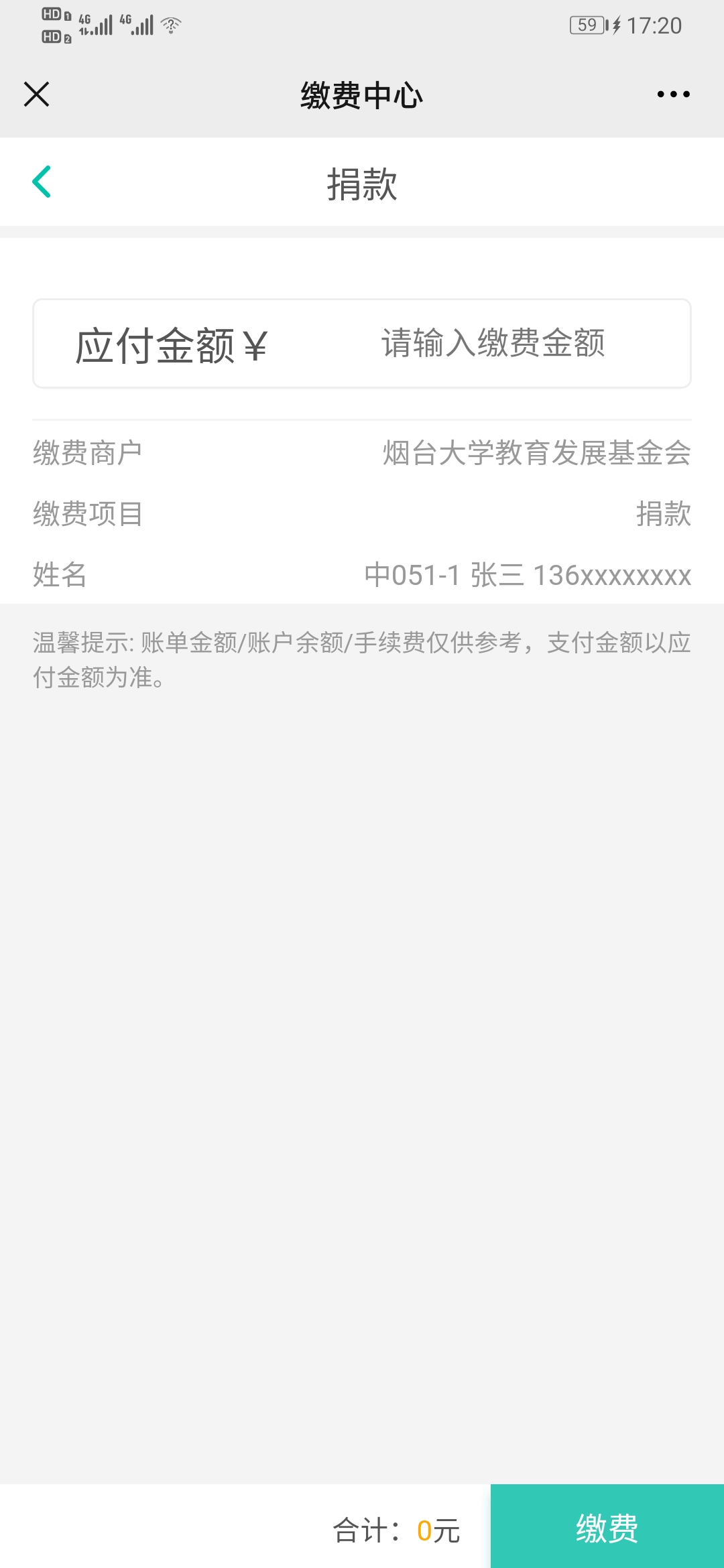 微信掃描或識別下方二維碼,填寫信息,點擊下一步,輸入捐款金額,點擊繳費即可。