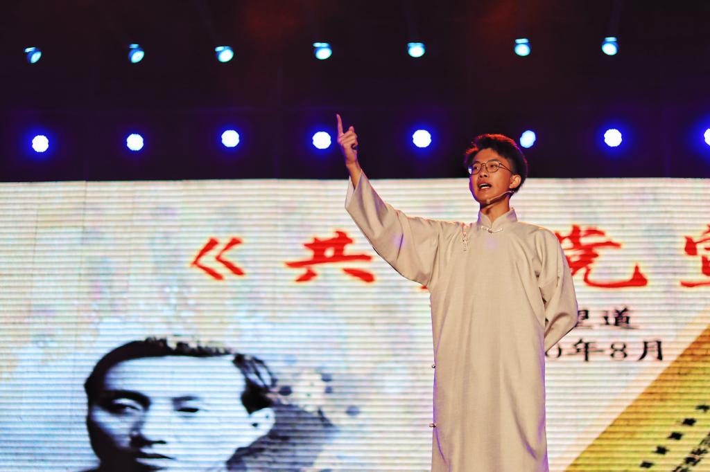 第一篇章中,情景講述《吶喊》,趙文靜老師講述了煙大在與黨同向同行的歲月里,有關奮斗的夢想與榮光,激勵青年學子要堅定理想信念、樹立家國情懷,爭做有志氣的時代新人。朗誦《革命者》,展現(xiàn)了毛澤東等革命先輩為國家和民族“實踐其所信,勵行其所知”的偉大建黨精神。歌舞建黨百年版《少年》,以青年之名,唱響百年黨史、舞動紅色青春。快板表演《煙大頌》,回顧了我校三十七載艱辛創(chuàng)業(yè)史,彰顯了一代又一代煙大人勠力同心、克服萬難的責任擔當,引發(fā)現(xiàn)場師生的強烈共鳴。第二篇章中,情景講述《紅日》,王緒敏老師講述了一代代煙大人以實際行動踐行跟黨走的理想追求,激勵青年學子要有剛強的意志和不屈的姿態(tài),爭做有骨氣的時代新人。器樂合奏《赤焰之纓》,情隨弦起,心隨鼓動,催人奮進。舞蹈《堅守?逐夢》,用婀娜的舞姿舞出了對信念的堅守和對夢想的憧憬。歌曲《追夢之路》,抒發(fā)了當代青年矢志奮進新征程的家國情和報國志,絢麗的舞臺燈光與揮舞的熒光棒交相輝映,瞬間點燃現(xiàn)場激情。第三篇章中,情景講述《破浪》,王瑩潔老師和學生代表共同講述了新時代煙大人將自己的所知所學投入到黨和國家的事業(yè)當中,投身加快實現(xiàn)高水平大學的建設當中,激勵廣大青年學子要練就過硬本領,爭做有底氣的時代新人。四位輔導員傾情演唱《翱翔》,情感真摯,唱出了對學生深深的祝福和殷切期盼。舞蹈《夢想點亮未來》,新穎炫酷、科技感十足。歌曲《乘風破浪再出發(fā)》《燈火里的中國》《走向復興》,恢弘大氣,禮贊時代、祝福祖國,抒發(fā)了煙大人滿懷豪情再啟新程,在接續(xù)奮斗中再創(chuàng)輝煌的信心。
