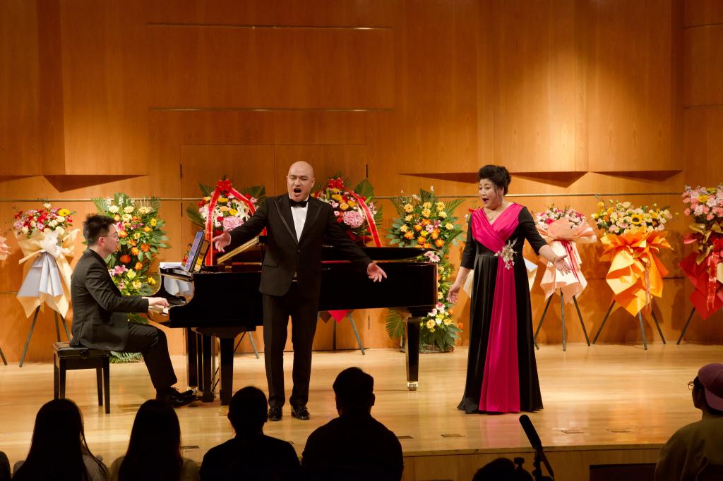 中國經典作品在音樂會上大放異彩。《念奴嬌·赤壁懷古》在鄒淑珍教授的演唱下展現出了豪邁壯闊的意境。隨后,鄒淑珍教授和特邀嘉賓徐祥演唱了充滿活力的羅西尼的《舞曲》,將音樂會推向高潮。在觀眾的鼓掌和喝彩聲中,鄒淑珍教授和徐祥老師為大家返場演唱了《一杯美酒》,音樂會在歡快熱烈的氛圍中落下帷幕。
