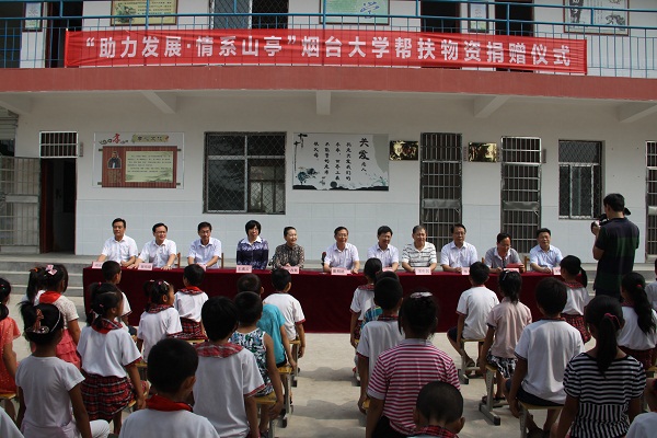 7月27日上午,“助力發展    情系山亭”煙臺大學幫扶物資捐贈儀式在山亭區山城街道巖頭村小學舉行。學校領導及山亭區委副書記、區長李春英,區委副書記李勇,區委常委、組織部部長姬偉鋒等出席活動。學校黨委書記崔明德在講話中指出,三年幫扶路,綿綿手足情。通過幫扶工作,煙臺大學與山亭區結下了深厚的友誼,三個幫包村發生了巨大的變化。農村生產生活條件明顯改善,村莊道路、自來水等基礎設施不斷優化,基本社會保障健全,村容村貌整潔,村莊的精神文明和物質文明建設取得了長足的發展。李春英區長代表區委、區政府對煙臺大學一直以來的關心支持表示衷心感謝。她說,煙臺大學派駐的“第一書記”工作深入,作風扎實,情況掌握得透,問題把握得準,工作有思路、有措施、有成效,為幫扶村注入了強大的發展動力。