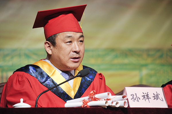 校長房紹坤在畢業典禮上發表了《致成長》的精彩演講。房校長代表學校向圓滿完成學業的2014屆畢業生表示祝賀。他說,在四年前的開學典禮上,就憧憬和期待著為同學們扶正流蘇、頒發學位證書的這一天快點到來,然而,當這個曾經眺望的未來真正來臨時,期待的心情卻化為深深的留戀。當聽到全場畢業生異口同聲地回答“還記得開學典禮上我給你們上的第一課嗎”的提問時,他露出了欣慰的笑容。作為同學們在大學階段的最后一堂課,房校長從三個方面闡釋了自己對“成長”的感悟,飽含了對廣大畢業生走好人生之路的諄諄教導和殷切希望。他說,“失去即是得到,挫折即是成長”——“成長,是經受挫折的歷練”;“沒有經歷破繭之痛,就沒有化蝶之美”——“成長,是歷經陣痛的蛻變”;“成長并不是青年人的專利,它是一個永無止境的過程,需要一步一步的攀登”——“成長,是人生無盡的階梯”。房校長深情地說,“煙大不僅是你成長過程中的一個站點,更是你前行路上的見證者、夢想實現途中的守望者;她不但要見證你四年的成長,更要見證你畢業后的所有發展”“煙大永遠在你們身后”。