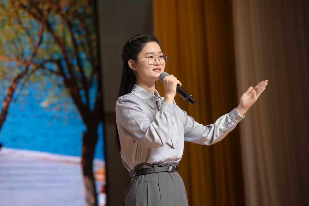 本科生國家獎學金獲得者、外國語學院韓蕊,本科生國家獎學金獲得者、海洋學院付潔,本科生校內獎學金獲得者、化學化工學院葛赫男,研究生國家獎學金獲得者、生命科學學院范譽婷也依次上臺分享了自己拼搏奮斗、好學力行的精彩故事,展現了新時代煙大學子的蓬勃朝氣與使命擔當。