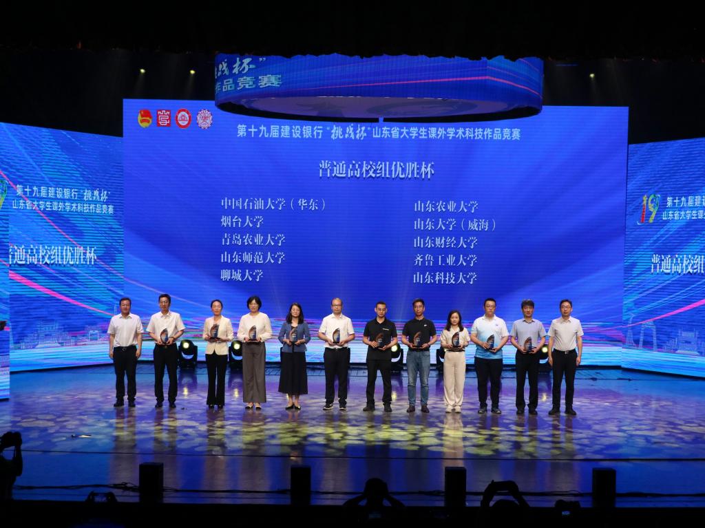 【本站訊】6月4日—6日,由共青團山東省委、山東省科學技術協(xié)會、山東省教育廳、山東省科學技術廳、山東社會科學院、山東省學生聯(lián)合會主辦,臨沂大學承辦的第十九屆建設銀行“挑戰(zhàn)杯”山東省大學生課外學術科技作品競賽終審決賽在臨沂大學舉行。煙臺大學黨委常委、副校長姚昌受邀出席。經過激烈角逐,學校最終斬獲特等獎6項、一等獎4項、二等獎5項、三等獎5項,實現(xiàn)了學校在“挑戰(zhàn)杯”省賽中獲獎數量及獲獎等次的新突破,學校還以山東省第三名的成績捧得“優(yōu)勝杯”。