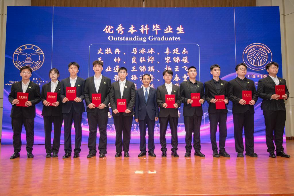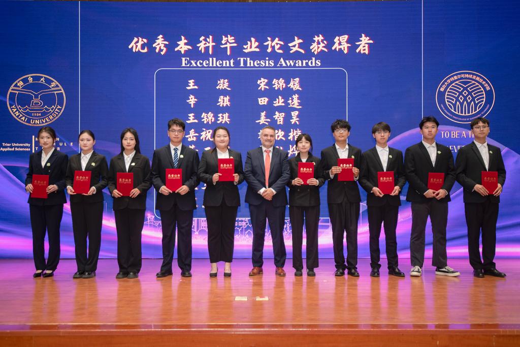 畢業典禮上,姚昌和德方代表Marco Angilella為2025屆優秀畢業生及優秀畢業論文獲得者頒發榮譽證書,王洪波與Peter Heck共同為畢業生撥穗正冠,中德雙方教師代表深情寄語,本科、研究生畢業生代表抒發臨別感懷。古典舞《拾光》以翩躚舞姿勾勒青春剪影,歌曲《Try everything》《七里香》《鳳凰花開的路口》的旋律交織著歡笑與淚水。