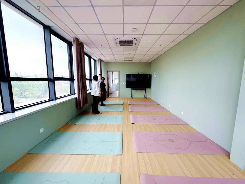據悉,八角灣校區“教工之家”位于行政樓416、417室和外國語學院204室,分別為職工書屋、體育活動室和瑜伽活動室。室內設置了舒適的休閑區,柔軟的沙發、明亮的茶幾,教職工可以品茶、喝咖啡、閱讀,小憩休閑享受片刻的寧靜;在書畫創作區等特色區域,教職工可以讀書交流、下棋習字;體育活動區則方便教職工鍛煉身體,保持健康活力,滿足教職工多樣化的需求。