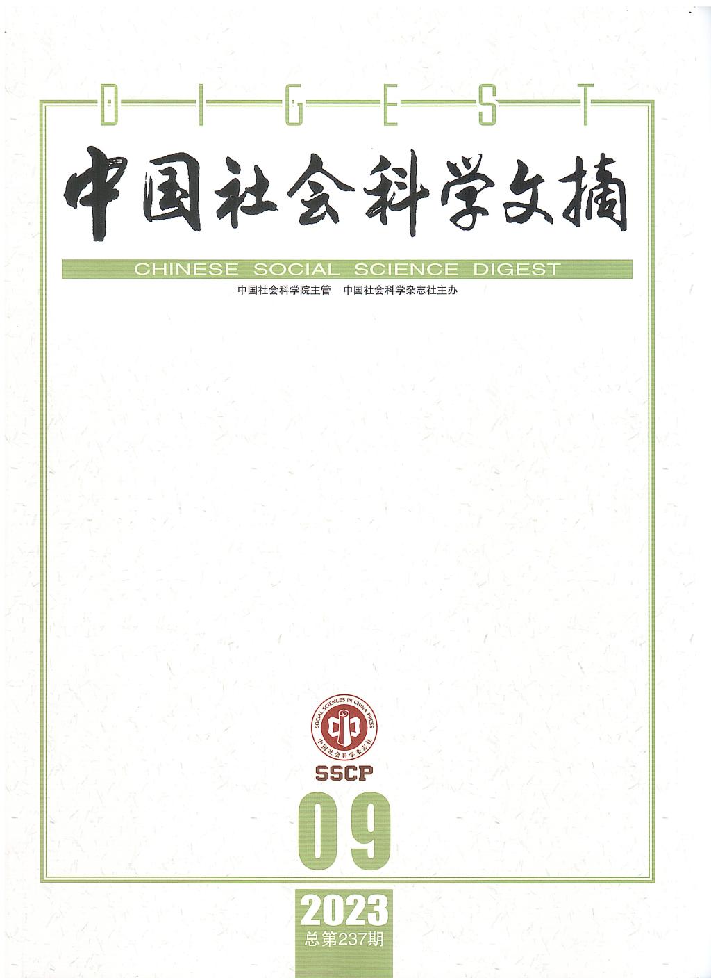 《中國(guó)社會(huì)科學(xué)文摘》是由中國(guó)社會(huì)科學(xué)院主管,中國(guó)社會(huì)科學(xué)雜志社主辦,是中國(guó)社會(huì)科學(xué)領(lǐng)域具有重要影響力的文摘刊物,學(xué)術(shù)背景深厚,篩選嚴(yán)格,以思想性、前瞻性、批判性、理論創(chuàng)新性著稱,是展示中國(guó)人文社會(huì)科學(xué)前沿學(xué)術(shù)成果的權(quán)威期刊。