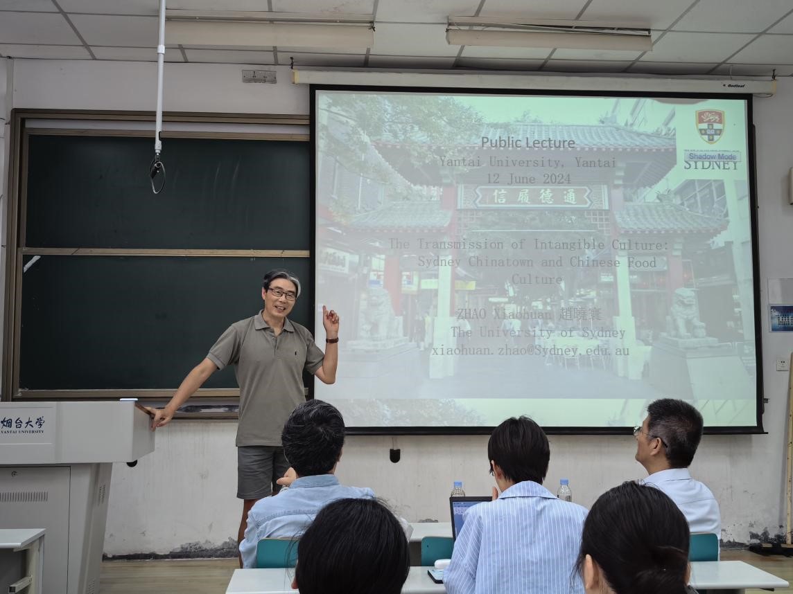 6月12日,煙臺大學(xué)文學(xué)與新聞傳播學(xué)院邀請悉尼大學(xué)人文與社會科學(xué)學(xué)院博士生導(dǎo)師趙曉寰教授來校做“非遺文化傳播:中華飲食文化在海外”的學(xué)術(shù)講座。講座由煙臺大學(xué)文學(xué)與新聞傳播學(xué)院新聞系主任李日主持,特邀東南大學(xué)藝術(shù)學(xué)院博士生導(dǎo)師汪小洋教授擔(dān)任評議人,近百名研究生、本科生聆聽講座。