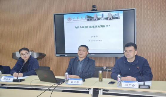 10月19日晚,山東大學法學院教授、博士生導師張平華教授應邀在法學院西區305做了題為“為什么說我們的生活充滿民法”的講座,本次講座由煙臺大學法學院林廣會副教授進行主持,煙臺大學法學院白玉老師、邱國威老師、紀力瑋老師、李群濤老師擔任與談人。