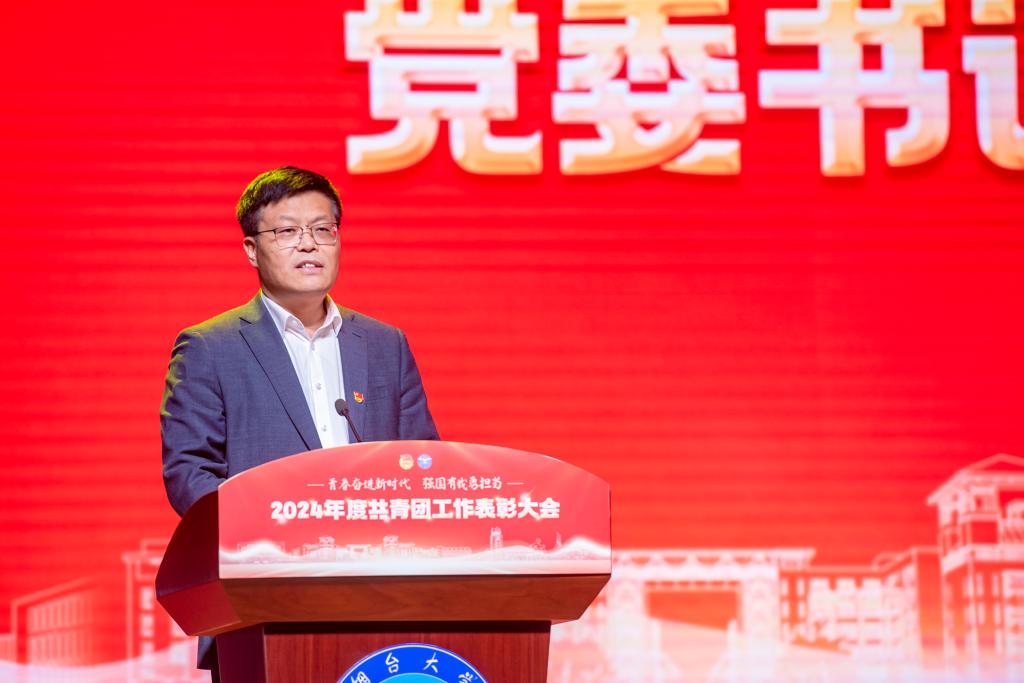 【本站訊】榜樣引領(lǐng)前行,青春譜寫華章。在五四青年節(jié)即將來臨之際,為深入學(xué)習(xí)貫徹習(xí)近平新時(shí)代中國特色社會(huì)主義思想,把習(xí)近平總書記關(guān)于青年工作的重要思想落實(shí)到學(xué)校共青團(tuán)工作中,著力提升團(tuán)的組織力、引領(lǐng)力、服務(wù)力和大局貢獻(xiàn)度,4月29日,學(xué)校在弘毅廳舉辦“青春奮進(jìn)新時(shí)代 強(qiáng)國有我勇?lián)?dāng)”2024年度共青團(tuán)工作表彰大會(huì),黨委書記盧國強(qiáng)出席表彰大會(huì)并講話。